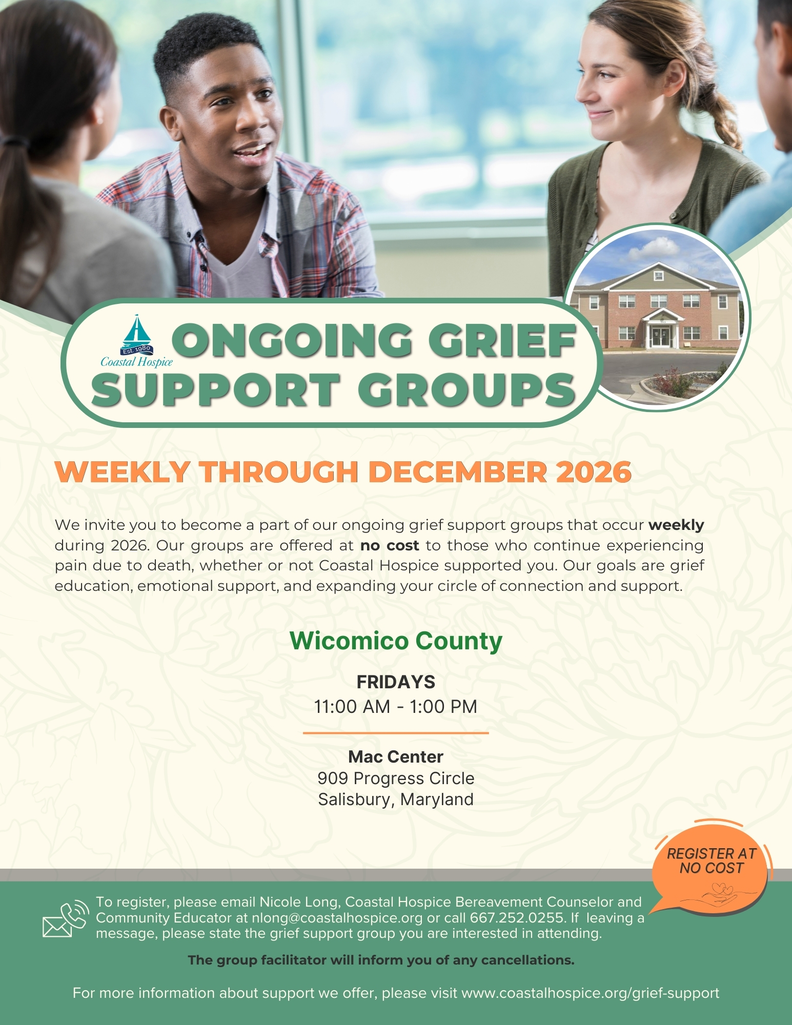 Wicomico County | Ongoing Grief Support Groups (Weekly) 2026