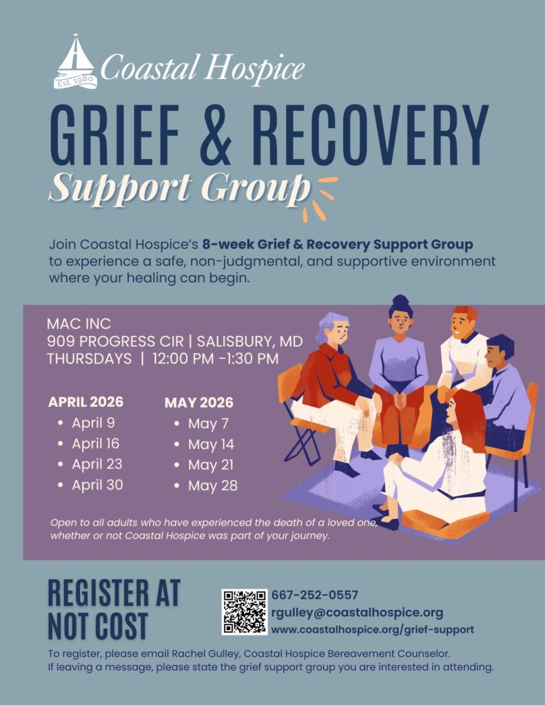 To register, please contact Rachel Gulley, Bereavement Counselor at Coastal Hospice | 667-252-0557 rgulley@coastalhospice.org