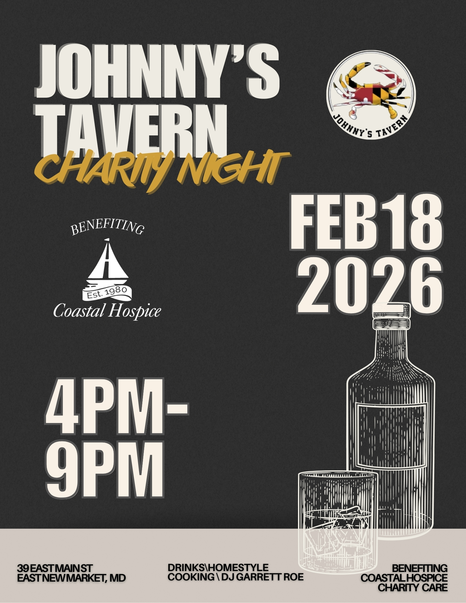 39 East Main Street, East New Market, MarylandJoin Us for a Fun Night Supporting Coastal Hospice Charity Care! We’re excited to invite you to Johnny's Tavern for our fundraiser benefiting Coastal Hospice Charity Care! Join us on February 18th from 4:00 PM to 9:00 PM in Dorchester County. Enjoy an evening of live music and a percentage of event sales will be […]