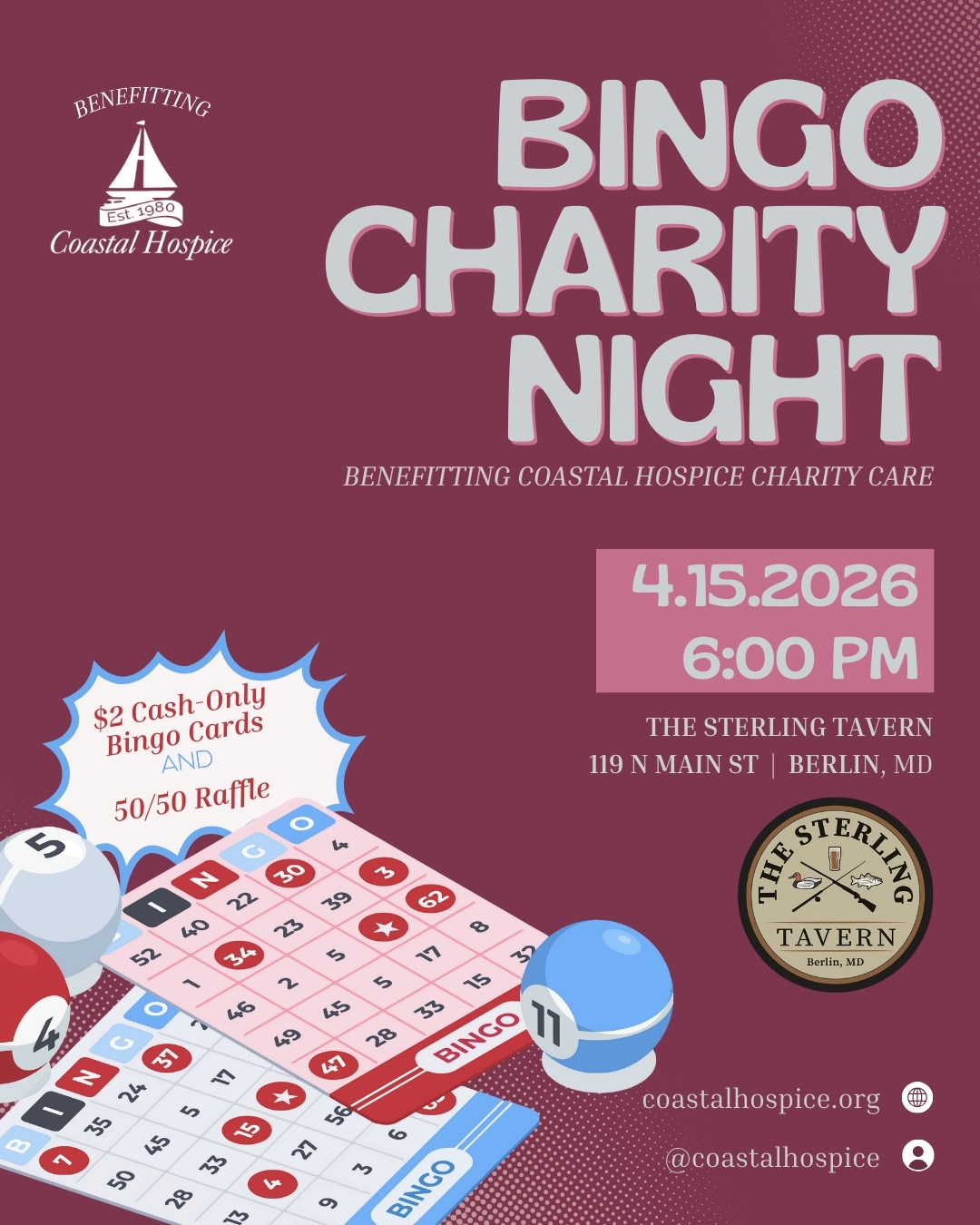 400 Race Street, Cambridge, MDJoin us for a fun night out at Blue Ruin in Cambridge, MD, on Saturday, March 21, from 5:00 – 9:00 PM, as they host a Charity Night benefiting Coastal Hospice Charity Care.Ten percent of all food, drink, and Musical Bingo proceeds will be donated to support patients and families across Maryland’s Lower Eastern Shore […]